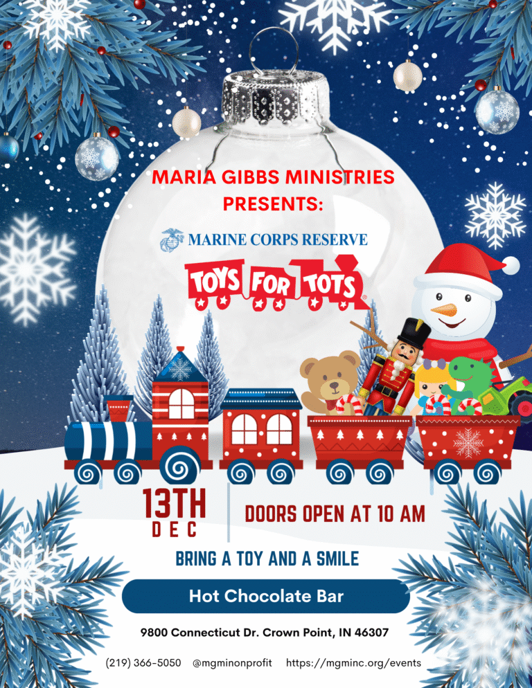 This year Maria Gibbs Ministries Inc. is proud to partner with the Marine Corps Reserve for a Toys for Tots event.